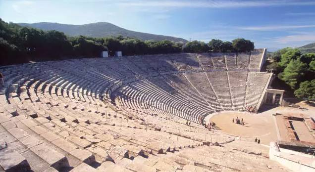 古罗马埃皮达罗斯露天剧场 (Theaterat Epidauros),建于公元前300年前,观众达17000人。为了使观众尽可能地靠近舞台,将观众席布置成升起很大的半圆形,提高了听闻效果。另外,演员使用面具来夸张面部表情,同时增加了向观众席的声辅射。表演区的上方及两侧建了倾斜的墙面,对子声音反射、提高语言清晰度有很大的好处。另外,古代室外背景噪声很低,全场观众静息而鸦雀无声时,表演者即使很微弱的声音也依然容易听清。